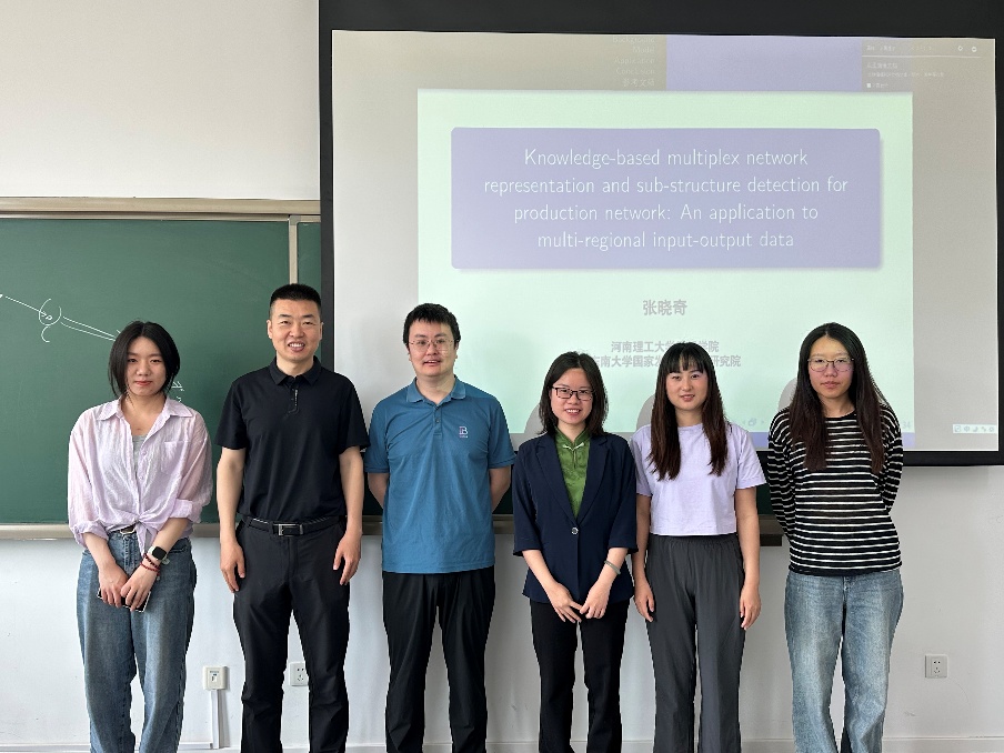 2025年5月15日上午,河南理工大学副教授张晓奇应邀在大数据与管理科学系列讲座上做了《A Knowledge-based multiplex network representation and sub-structure detection approach for asymmetric network: An application to multi-regional input-output network》主题报告。本次讲座在沙河二教204教室举行,由魏璐老师主持,beet365硕士、博士生生参加了讲座。