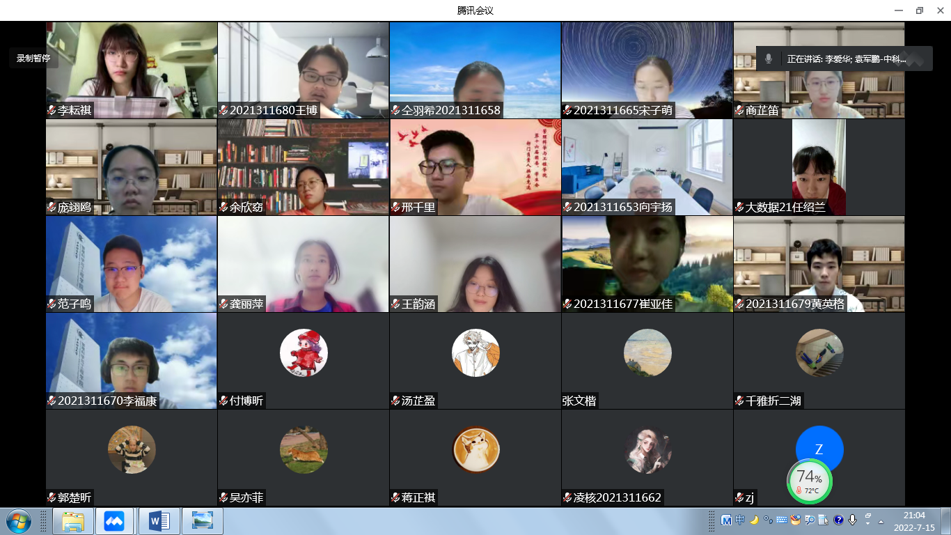 2022年7月15日晚19:30,中国科公司情报文献中心研究员、中国科公司大学岗位教授、博士生导师袁军鹏受邀来为2021级“许国志大数据英才班”同学做关于科学研究规范的讲座。