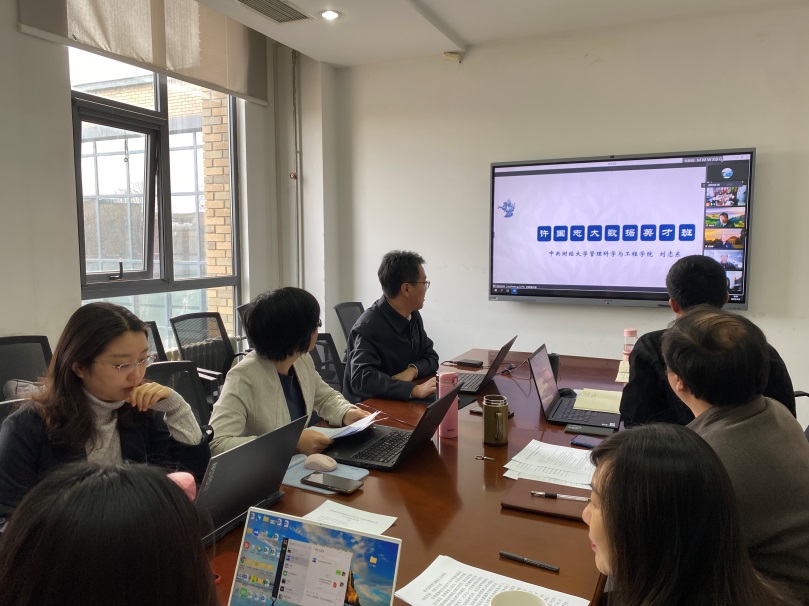 研讨会邀请了教育部高校管理科学与工程类专业教学指导委员会主任、清华大学陈国青教授;中国科公司大数据挖掘与知识管理重点实验室主任、中国科公司大学石勇教授;教指委委员、浙江大学/大连理工大学胡祥培教授;中科院数学与系统科学研究院系统科学研究所副所长杨晓光研究员;教指委委员、哈尔滨工业大学经济与管理公司经理叶强教授线上交流指导。beet365教务处李季副处长、beet365刘志东经理、姜涛书记、贾传亮副书记、李爱华教授、荆中博副教授及管理科学系多名骨干教师与会讨论。此次会议以“线上+线下”的形式进行,由党委副书记贾传亮主持。