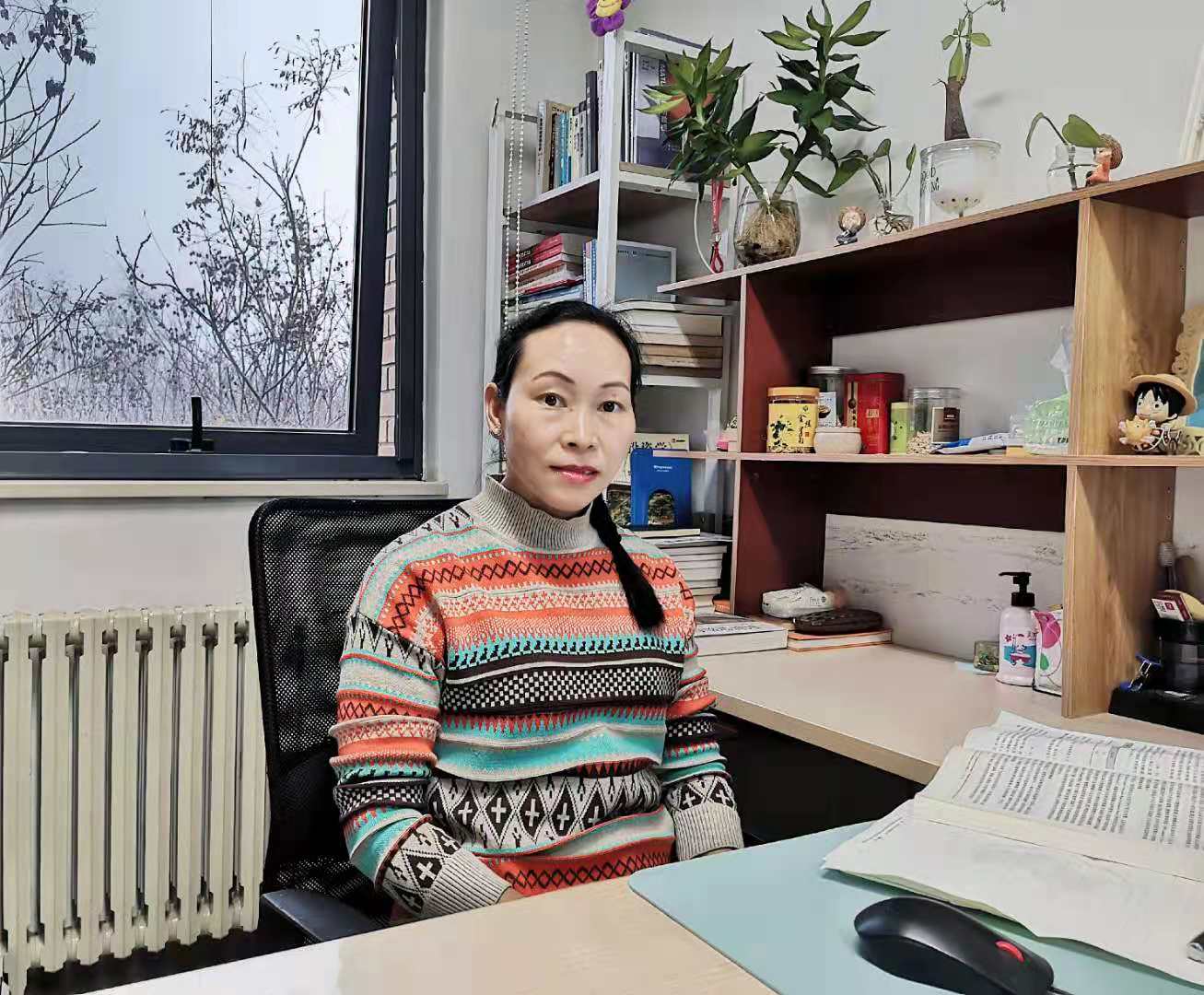 欧变玲老师在办公室工作照片